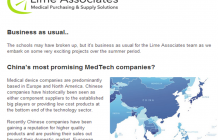 Lime Associates uses its extensive experience and resources to help medical and health technology clients to address procurement and supply chain issues including cost and inventory reduction, overcoming technical constraints, customer service improvement and global sourcing.